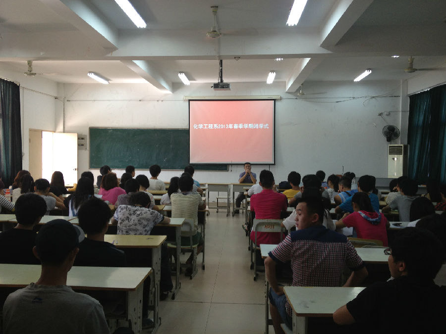 7月4日上午8:00,化学工程系在31#307多媒体教室召开2013年春季学期闭学式,系党总支书记阮亿明,系辅导员翁秀琴、张智佳以及2011、2012的全体同学参加了闭学式。