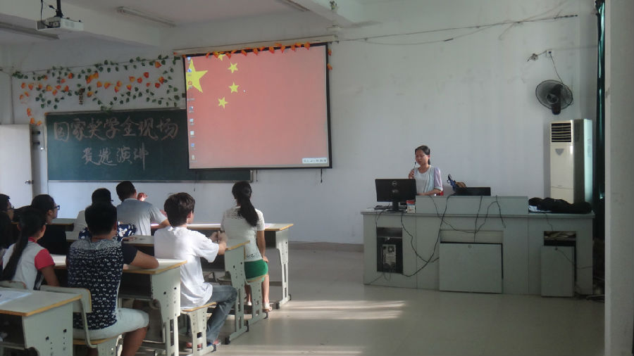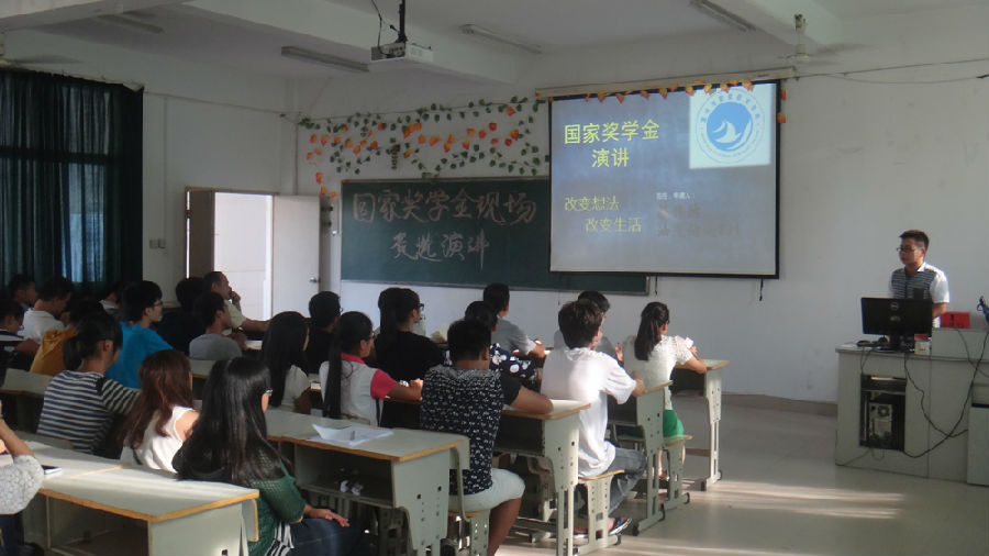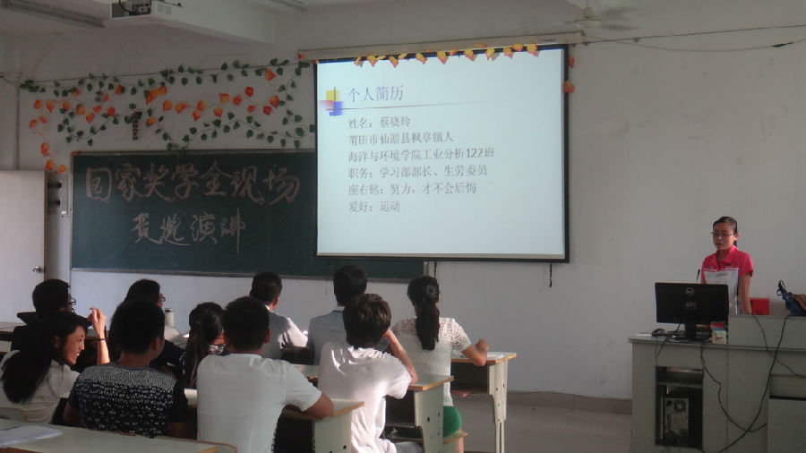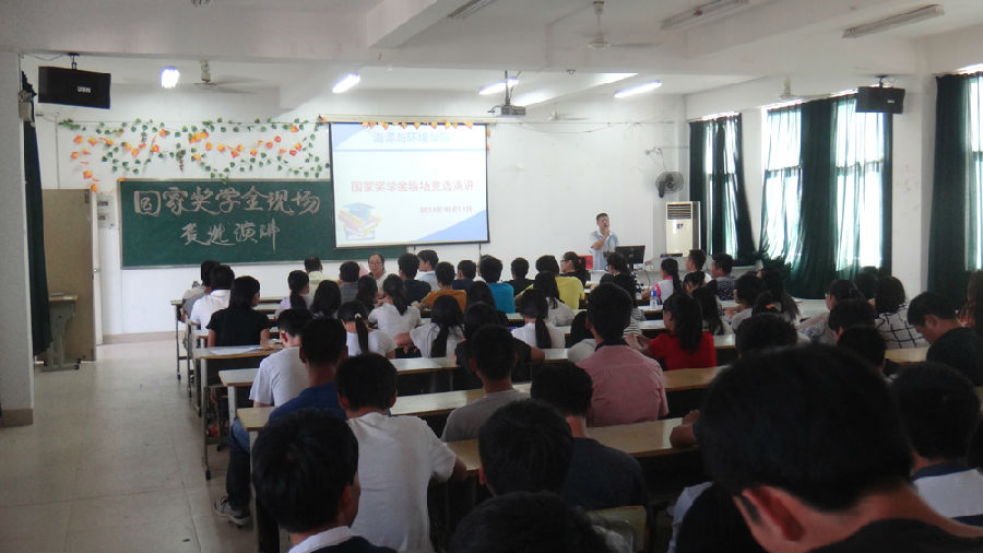 10月11日下午15:00,海洋与环境学院2013-2014学年国家奖学金现场竞选演讲大会在31#307多媒体教室隆重举行。大会由党总支书记阮亿明、副主任杨海贤、实训中心主任刘开敏等5名教师代表以及由各班随机抽调的8名学生代表组成评审团成员。7位国家奖学金候选人将角逐唯一的一个国家奖学金名额。部分大一学生代表出席本次大会,现场座无虚席。学工处副处长林俊老师也亲自莅临大会现场指导评选工作。