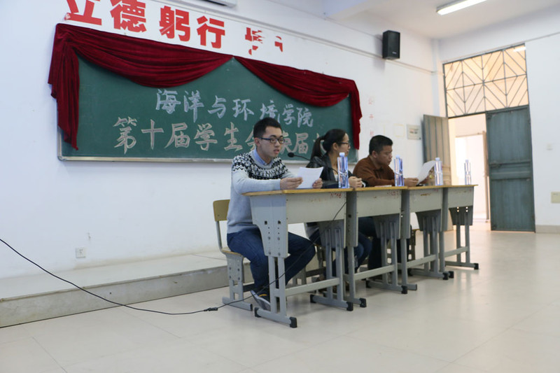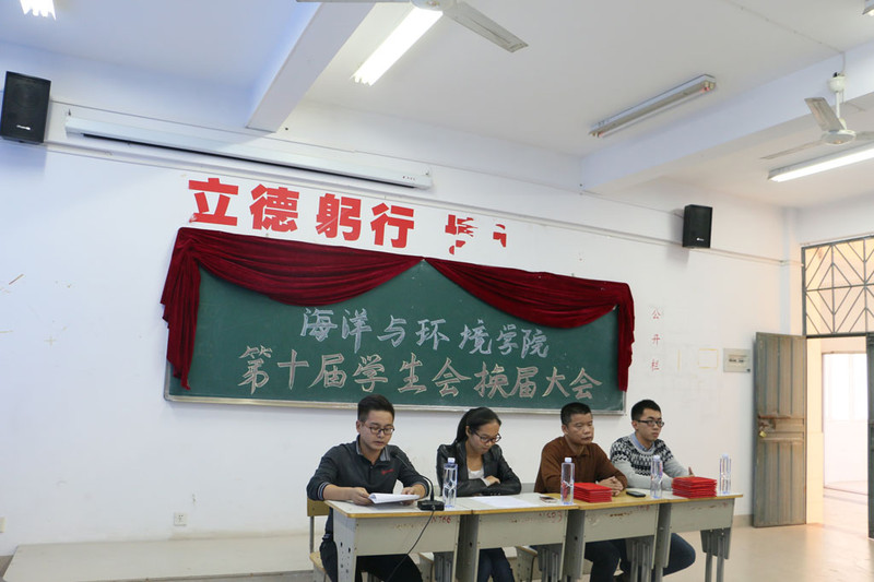 会上第九届学生会主席汪璐宇就上一学年学生会工作做了工作总结。全面回顾了一学年以来,学生会工作取得的骄人成绩。接着,阮书记和翁老师为上一届学生会干部颁发了聘书。随后,翁老师宣布了新一届海洋与环境学院分团委学生会成员名单,之后新一届学生会主席蔡伟德发表讲话,对新一学年的工作做出展望。最后,党总支书记阮亿明发表重要讲话。他高度评价了第九届学生会工作取得的成绩,并对新一届学生会成员提出了殷切的希望,希望他们百尺竿头更进一步,把学生会工作做好,做出特色。