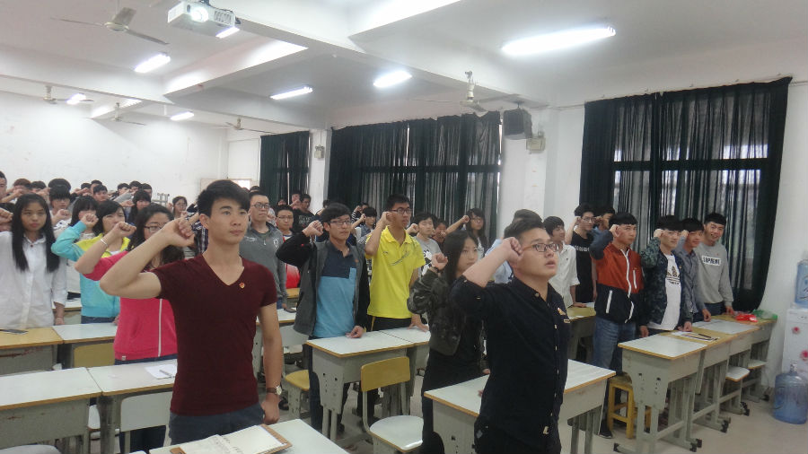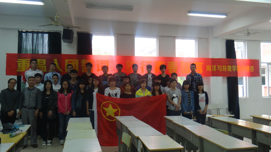“我志愿加入中国共产主义青年团,坚决拥护中国共产党的领导,遵守团的章程……”5月4日下午,31#307多媒体教室青春洋溢、热情激荡,来自海洋与环境学院的百名学生齐聚于此,庄严宣誓,重温入团誓词,接受爱国主义教育的洗礼。海洋与环境学院党总支书记阮亿明出席仪式。仪式由翁秀琴老师主持。