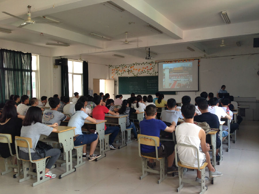 9月8日上午,海洋与环境学院组织新生专题学习习近平总书记在纪念抗日战争胜利70周年大会上的讲话精神。院党总支书记陈志君组织学习会。