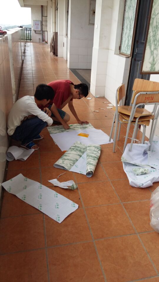 讨论设计方案,从网上购买墙纸、饰品、清洁工具,取包裹,裁纸、贴墙,装饰储物柜、梦窗,清洁盥洗室,整理室内物品……从9月25日宿舍风采设计大赛启动以来,这些工作成了我院1#男生宿舍所有舍员们课余的主要活动内容。DIY,用双手美化宿舍环境,用智慧打造温馨生活空间,是大家共同的目标。有人出主意,有人出力气,大家你扶我一把,我帮你一下,共同谋划,共同行动,在欢声笑语里一起打造属于大家的温馨之家。“温馨、整洁、环保”,是大家不约而同的心声。“异朽阁”、“黄鹤楼”、“小巷深处”等富有诗情画意的舍名、舍徽,体现了大家的情怀。付出总有回报。大家的汗水换来了宿舍环境的焕然一新,大家的智慧让自己的宿舍生活别具一格。征途还在继续,期待最终成果展现的那一刻。