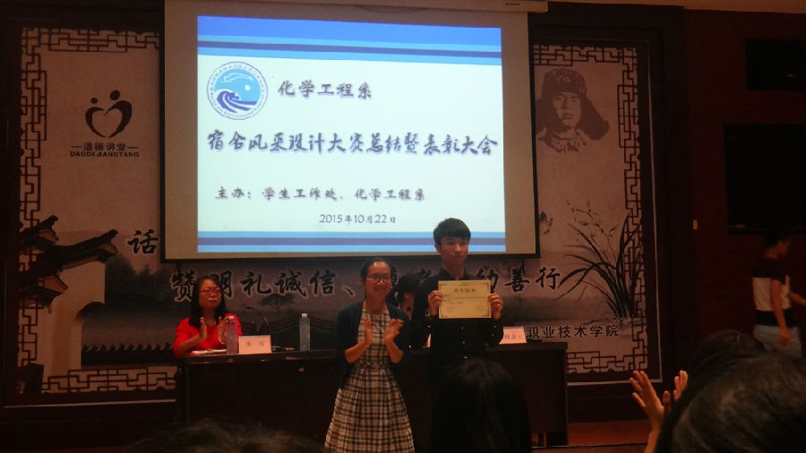 会上,翁秀琴老师对宿舍设计风采大赛活动进行了总结,她认为此次活动组织领导有力,参与面广,活动中同学们发挥创造力,发扬吃苦耐劳的精神,自己动手,装饰美化自己的生活环境,取得了较好的活动效果。同时,大家在互帮互助的活动过程中,增进了了解,提升了宿舍凝聚力。同时,她也指出了活动存在的不足,希望同学们在今后的生活中,进一步增强集体和团队意识,培养良好的生活习惯,共同建设温馨舒适的宿舍生活。接着,朱晴老师宣读了比赛结果。最后,与会老师为获奖宿舍颁发了奖状。