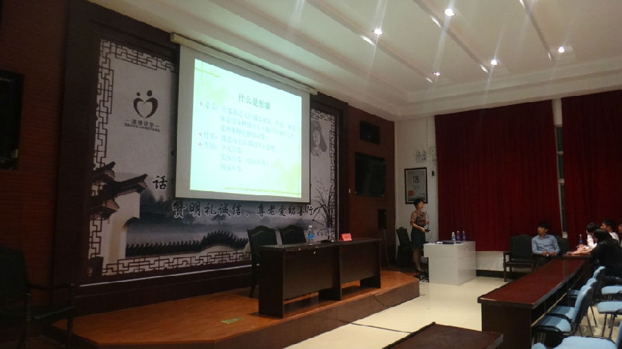 讲座中杨丽贞老师首先给我们具体阐述了什么是大学生的形象,她倡导大学生应当树立道德与礼仪同行,学识与风度并存,感情与风貌相通的良好形象。讲座第二部分礼仪部分,杨老师亲身示范,同时让在场男女生分别起立学习正确的站姿等。