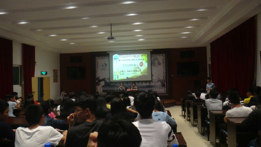10月29日晚7:00,图书馆一楼报告厅内海洋与环境学院14、15级学生相聚在此共同聆听由基础部主任杨丽贞老师主讲关于大学生形象与礼仪的讲座。讲座由海环院党总支书记陈志君书记主持。