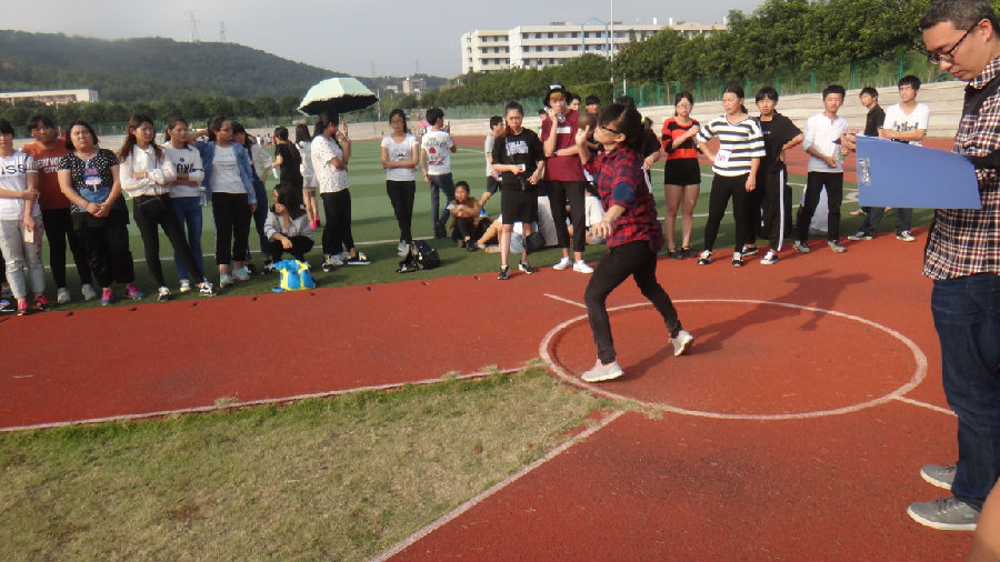 工业分析141陈婉萍参加女子铅球比赛