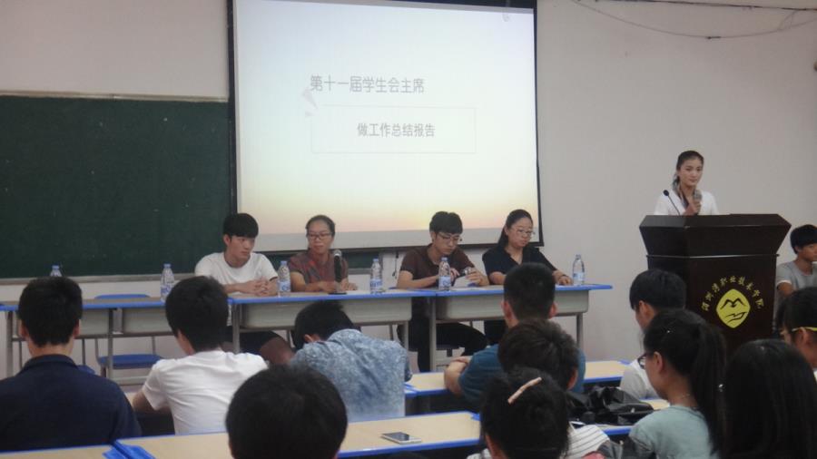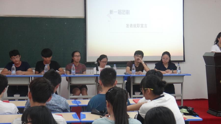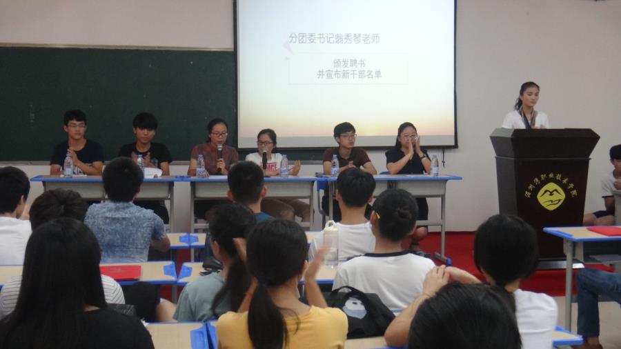 6月25日下午,我院在307多媒体教室举行第十二届两委学生会干部换届大会,党总支书记陈志君、分团委负责人翁秀琴老师以及学生干部代表参加了此次大会。