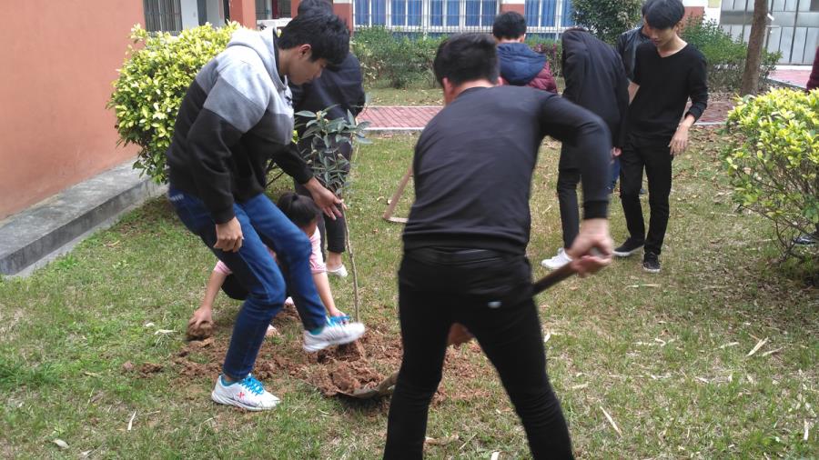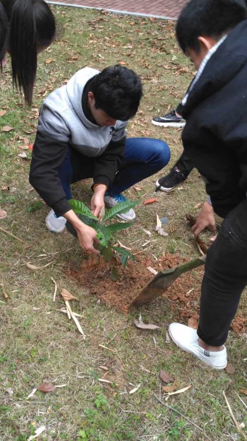 莺飞草长日渐暖,大地回春万物兴,当温暖笼罩在3.12植树节的日子里,我院同学们买来了树苗,将自己的汗水挥洒在了这个充满希望的春天。 经过简单的策划与讨论,植树活动得到大家一致的通过,3月12号下午三点,化工楼旁的绿化带上,海环院的同学们齐心协力,鼓足干劲,挖坑、培土、挥动铁锹,铲土填坑,植下一株株新苗。一阵忙碌之后,一棵棵桃树、桂树、枇杷挺立在三月的和煦春风里。种下一棵桃树,成就一季春色;种下一棵桂树,成就一片芳香;种下一颗真心,撒播爱的种子。 此树海环种,何日与楼齐?几度风雨后,能赋后人荫。