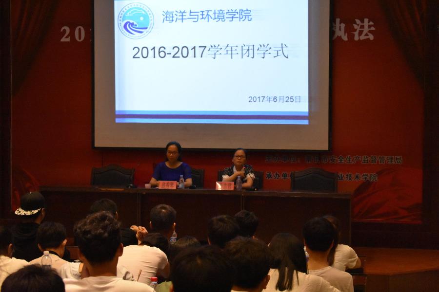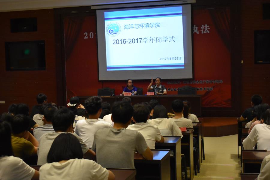 6月25日晚,海洋与环境学院在图书馆一楼举行2016-2017学年闭学式。党总支书记陈志君和辅导员翁秀琴,以及大一大二学生出席了本次会议。会议由辅导员翁秀琴老师主持。