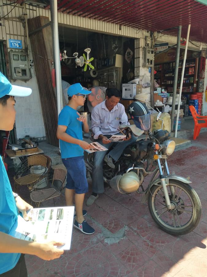 在活动过程中,实践队队员忙碌在大街小巷,向附近居民、沿街商铺及过往群众分发护河宣传单,介绍护河具体做法。