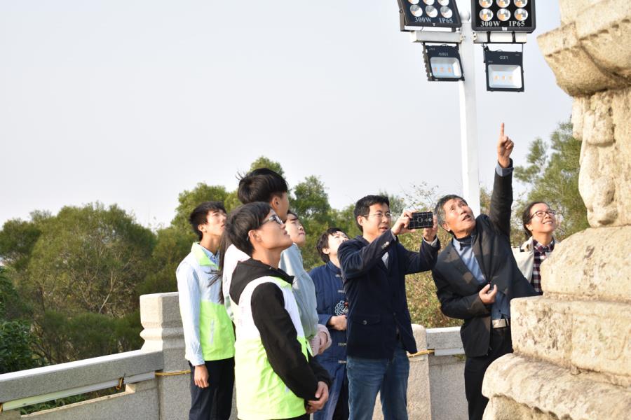 来到塔斗山,我们有幸碰上了枫亭文化研究会副会长郑秋鉴老师带领省文物局领导参观万寿塔。我系师生借此机会一起聆听郑老师解说国家级文物万寿塔的建造及其塔表面浮雕的设计由来,听了郑老师的介绍,大家对万寿塔塔文化有了更深入的了解,更增强了同学们保护文物的责任意识。