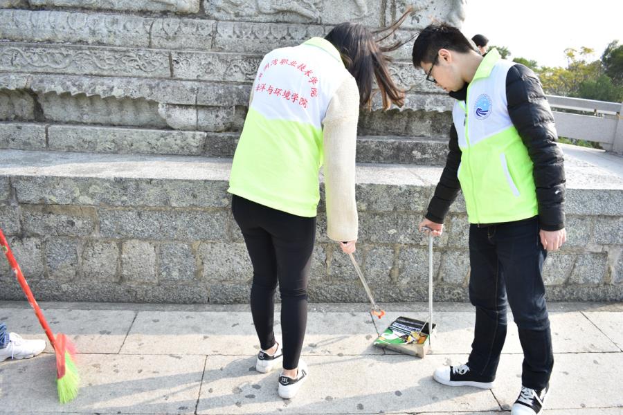 在随后的志愿服务活动中,同学们干劲十足,分工明确,对塔身以及塔周围的卫生进行了认真的清理,并号召周围的游客共同保护好万寿塔。