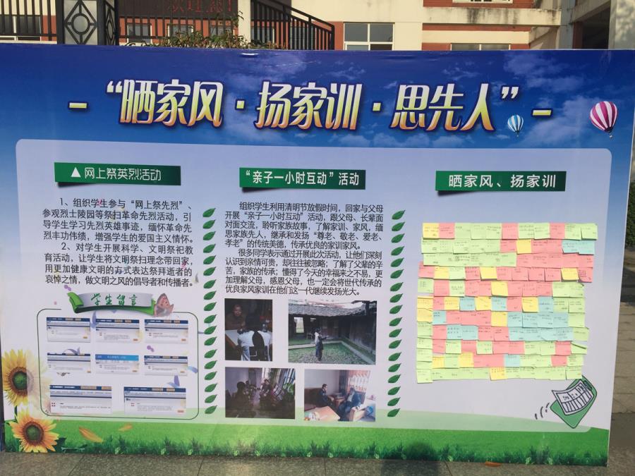 清明节是中国传统节日,为了引导我系学生过一个文明、温情的清明假期,传承、宣传优良家风家训,强化对学生的亲情教育和传统文化教育,化学工程系在清明节前后开展“我们的节日·清明节——晒家风·扬家训·思先人”主题活动。