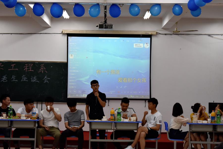 座谈会上,在校学生干部播放了两委学生会精心制作的毕业生视频,回顾了大三学长学姐们两年在校的美好时光,接着全体师生一起演唱《后来》,送给毕业生。交流会在感动和轻松愉悦的氛围下开始了!