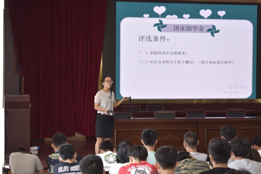 翁老师主要从学生关心的奖、惩、助、贷四个方面进行阐述。在奖励方面,翁老师详细介绍了大学奖学金种类、奖励标准以及评选条件等;在惩处方面,着重说明我院纪律处分种类以及处分的范畴等;针对同学们关心的助学金问题,翁老师也从助学金申请条件、申请材料准备等方面做了介绍。