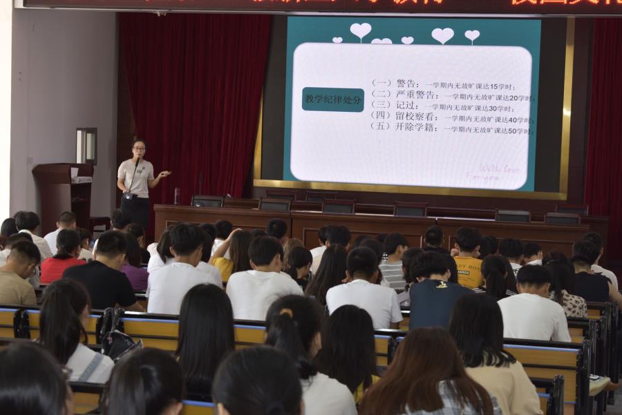 9月10日上午,我系举行新生入学教育之学生管理制度汇编解读,活动由我系辅导员翁秀琴老师主讲,2018级辅导员姚宁和全体新生参加了此次活动。