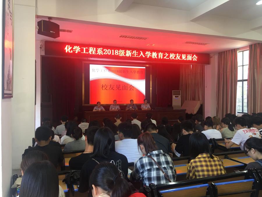 9月14日下午,我系新生入学教育邀请到湄洲湾氯碱有限公司三位校友,分别是09届毕业生吴军权、龙海、符芳德与我系2018级新生开展一场别开生面的校友见面会。会议由我系主任赖国新主持。