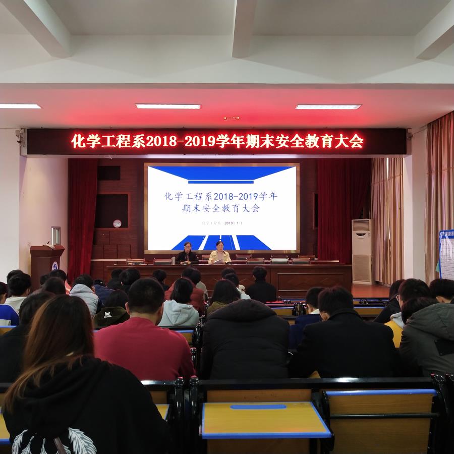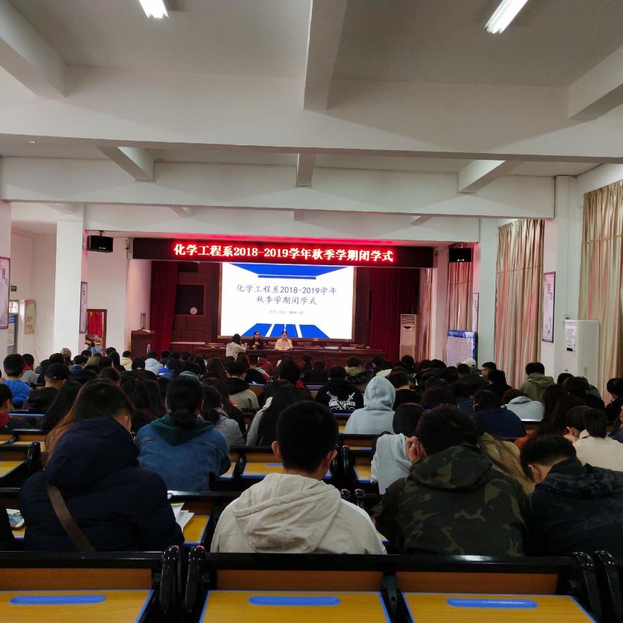 转眼间充实而美好的一学期即将结束,为了总结一学期以来我系学生工作,更好地迎接期末考试,让学生度过一个安全、快乐而有意义的寒假,2019年1月8日下午,化学工程系在中专一层报告厅召开2018-2019学年秋季学期闭学式。参加本次会议的有翁秀琴、姚宁两位老师和全体在校学生。