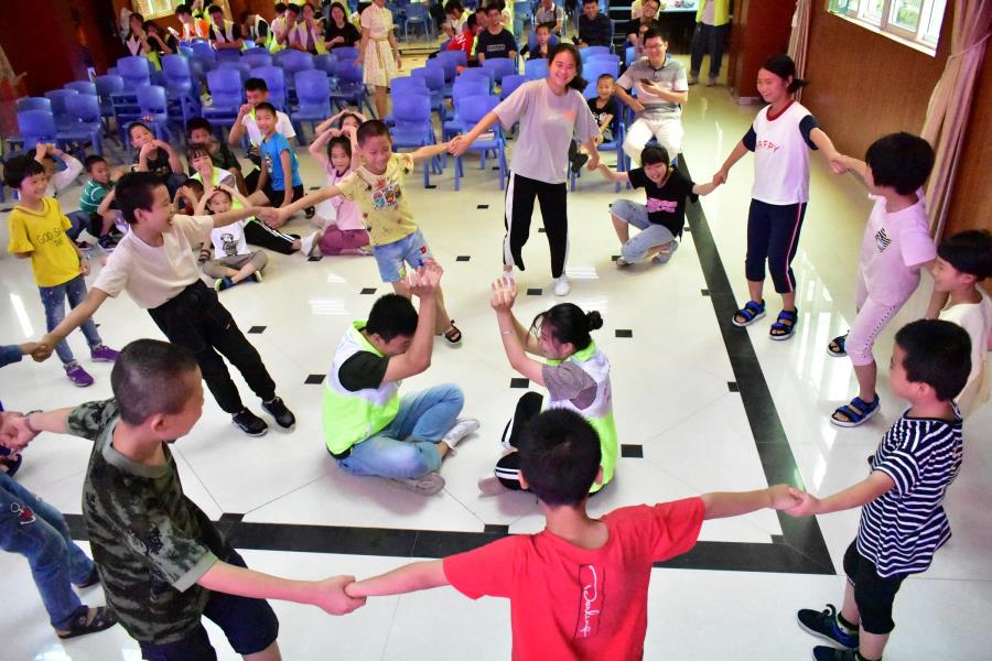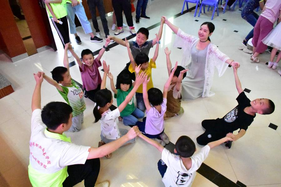 “头头拍拍,肩肩拍拍……”伴随着拍手歌,6月2日上午,SOS儿童村内洋溢着欢乐的氛围,每个孩子脸上笑容无比灿烂,这是化学工程系志愿者们走进SOS儿童村,与孩子们共庆六一节的活动场景。