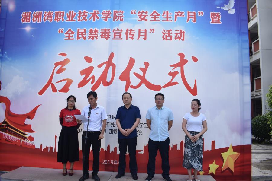 防风险、除隐患、遏事故,增强全民安全意识;健康人生,绿色无毒,珍爱生命,远离毒品。6月18日下午,湄洲湾职业技术学院安全生产月暨毒品宣传月启动仪式在化工楼广场举行。出席活动的领导有学院副院长陈金毓、保卫科科长蔡国民、学工处副处长林燕清,以及团委老师、保卫科老师、各系院老师、各系院学生代表参加了此次活动。