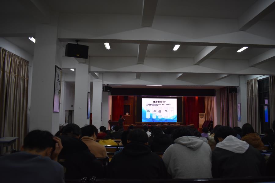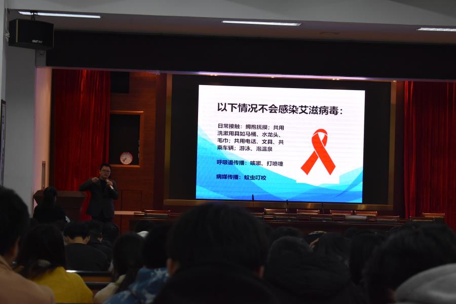 陈加杨副主任由疾病传播形成因素引出公共卫生问题是跨层次的。向同学们普及了艾滋病的知识和发展史。并且告诉同学们造成感染是因为足够量的病毒和有效的传播途径两个条件,而艾滋病的传播途径主要来源于性接触传播,血液传播和母婴传播。艾滋病病例在快速增长,现在主要从宣传教育,行为干预,随访管理,治疗四个方面预防控制。