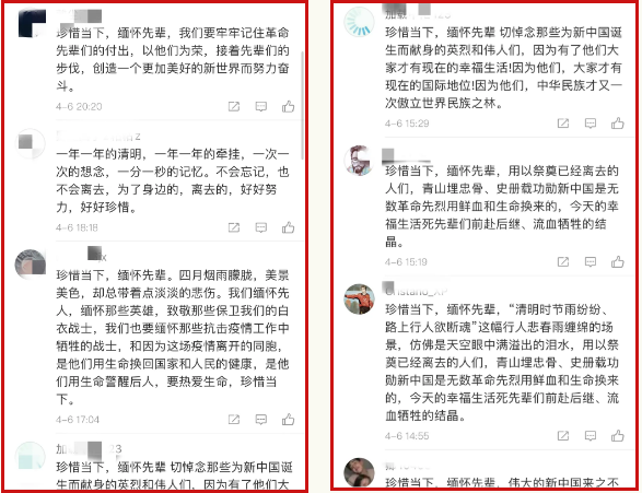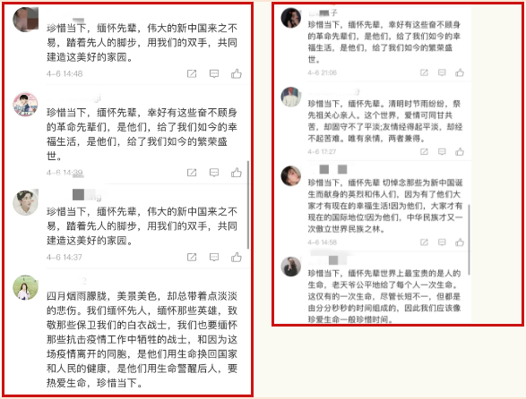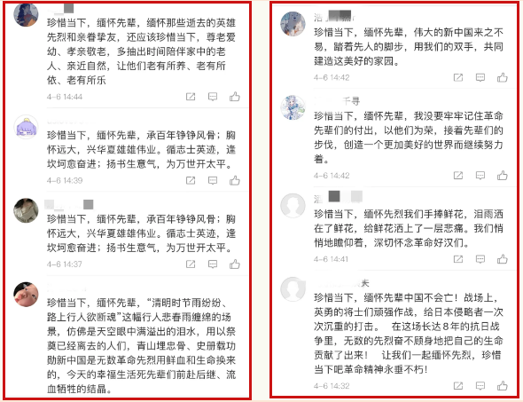 不论是为中国革命英勇献身的先烈,还是在这次疫情中的“逆行英雄”他们的感人事迹都值得我们每个人铭记。