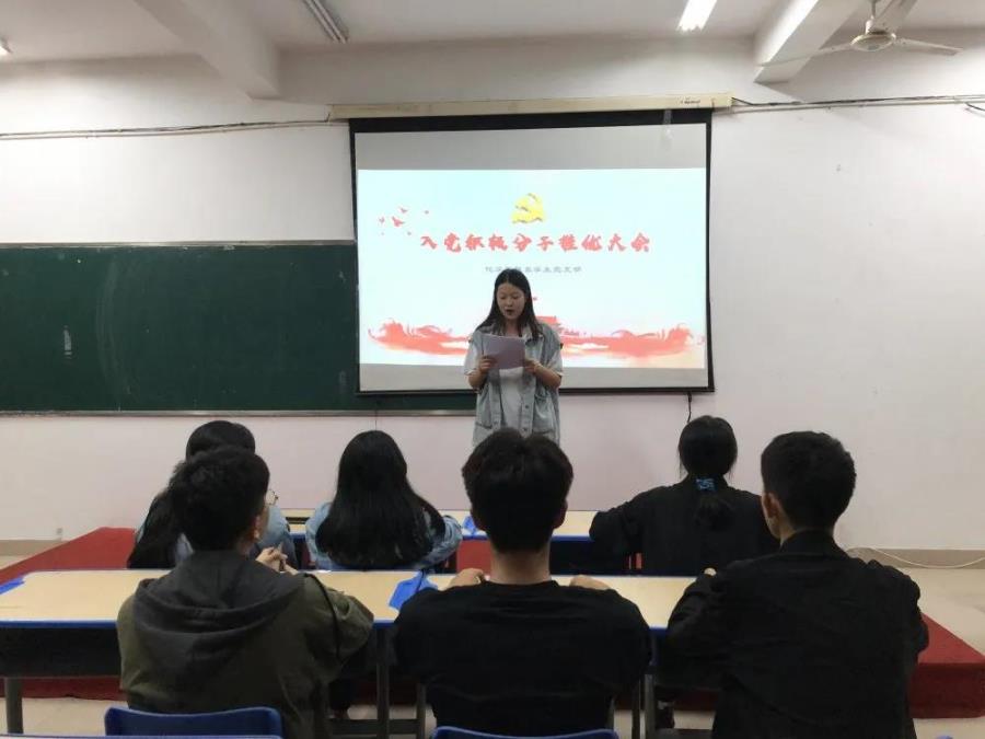 大会开始由学生党支部书记张艳君同志根据《中国共产党发展党员工作细则》介绍积极分子推荐大会的规则与流程,按要求召开此次推荐确定入党积极分子会议。接下来,邱丽婷、邓梓豪等8名递交入党申请书的团员依次上台进行了演讲,大家了解到邱丽婷、邓梓豪等8名入党申请人在政治上热爱祖国、坚决拥护党中央的领导,政治觉悟较高;在学习上,努力奋斗,积极进取;在生活方面,勤俭节约,热爱劳动。