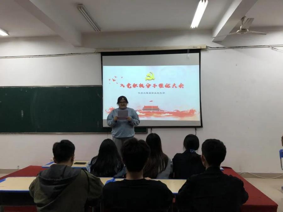 2020年11月16日,化学工程系学生党支部在30#307教室顺利开展2020年下半年入党积极分子党员推荐大会,本次大会由学生党支部书记张艳君同志组织召开。本次会议主要是对邱丽婷、邓梓豪等新一批8名入党申请人的表现进行讨论、投票,并选出符合条件的优秀入党积极分子。