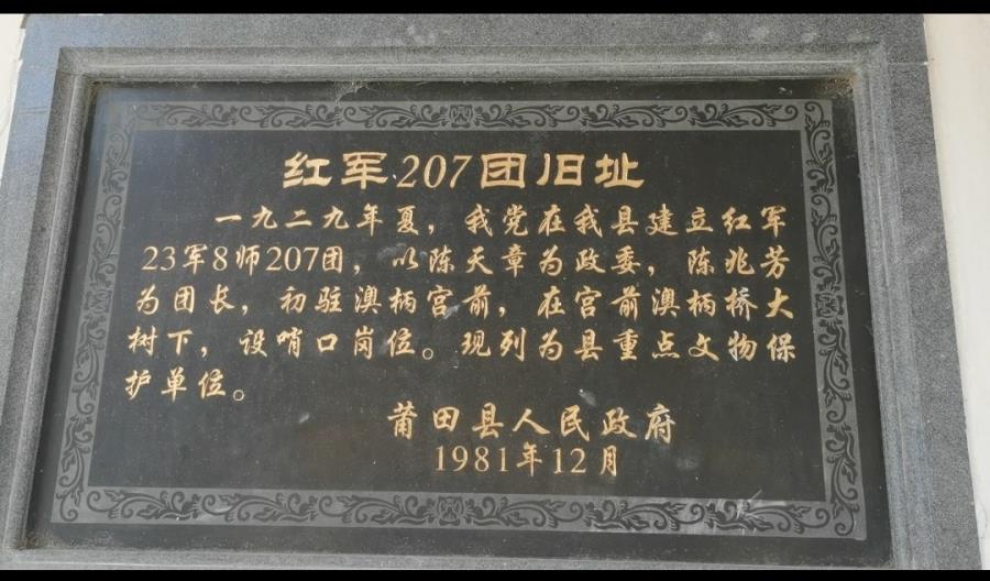 欢迎来到由化工系党支部组织的“诉党史·映初心”活动,我是顾玲玲,接下来由我带大家了解“红军207团旧址”。红军第207团旧址位于福建省莆田市涵江区白沙镇澳东村。它是有澳柄宫、澳柄桥、陈列馆组成,占地面积4000平方米。