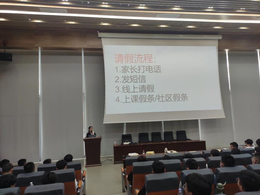 为全面贯彻党的教育方针,保证学生的德、智、体、美、劳全面发展,在9月10日上午10点张艳君、罗茂林辅导员在303报告厅召开了《学院学生各项规章制度解读》的讲座。