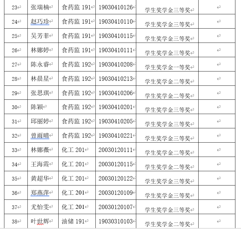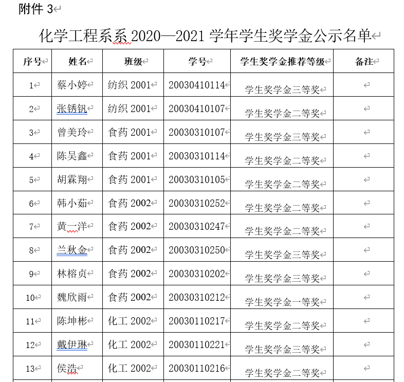 3. 化学工程系2020—2021学年学生奖学金公示名单