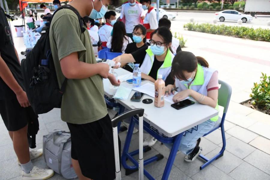 志愿者们在校门口积极工作,要求返校学生在进校前先进行手部消毒、更换口罩、测量体温,然后再查看健康码、行程码等,确保无误后方才能进校。同时还有志愿者帮忙搬运行李,将同学们和行李送至小白车上……在志愿者们的工作配合下,返校现场井然有序,并且返校学生也感受到了“回家”的温暖。