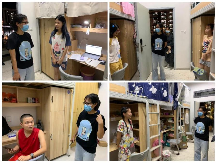 当晚,我系翁秀琴书记来到学生宿舍,慰问复学返校的学生。走访过程中,书记与同学们进行了亲切交流。仔细询问学生返校途中是否顺利,详细了解了同学们疫情期间居家生活、线上学习情况,提醒同学们返校后要保持好宿舍环境卫生,勤开窗通风,外出佩戴口罩,并希望大家尽快调整状态,以崭新的精神面貌投入到新的学习生活中。