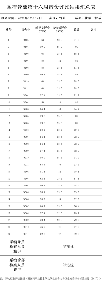 本周宿舍卫生检查结果来啦!!!