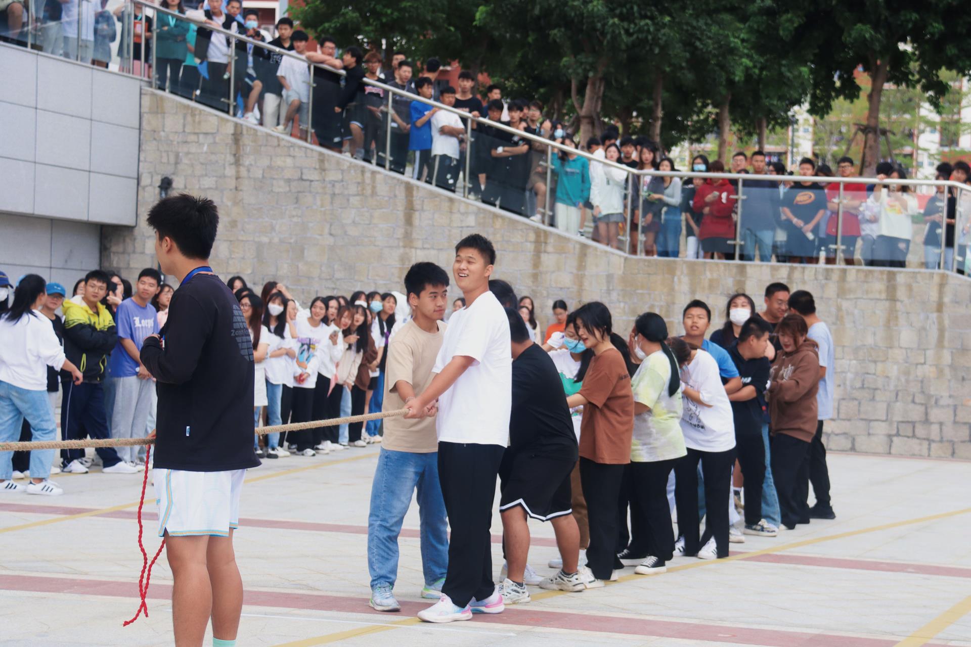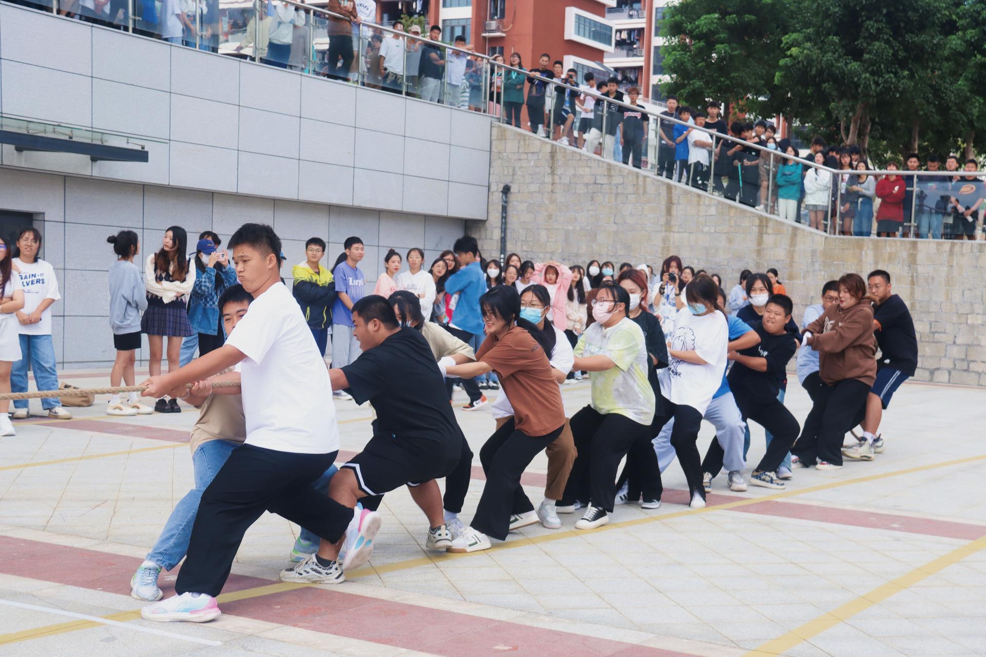 本次拔河比赛旨在引领新生以实际行动学习践行党的二十大精神,激发新生凝心聚力、砥砺奋进的昂扬斗志,引导新生树立奋进新征程、建功新时代的远大志向。比赛还增强了新生班级凝聚力和集体荣誉感,进一步传承发扬了团结协作意识和奋斗拼搏精神。希望新生在今后的学习生活中能常葆拔河的劲头,迎接人生挑战,书写精彩篇章。