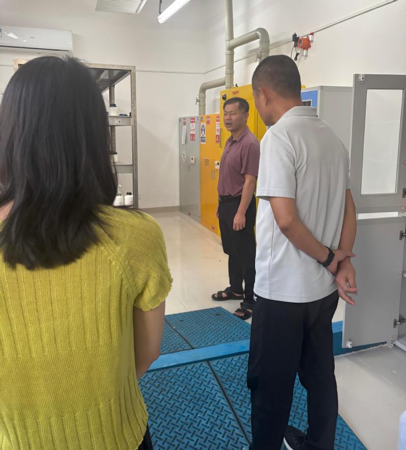 2025年9月5日,化学工程系主任赖国新、副主任刘开敏领安全员、实验管理员,深入专业实验室开展全面安全检查工作。对危险化学品安全管理、实验室用水用电安全消防设施及应急通道等情况进行了逐一排查现场指出隐患并要求限期整改。检查过程中,系主任反复强调严格遵守实验操作规程的重要性,提醒大家务必树立安全防范意识。