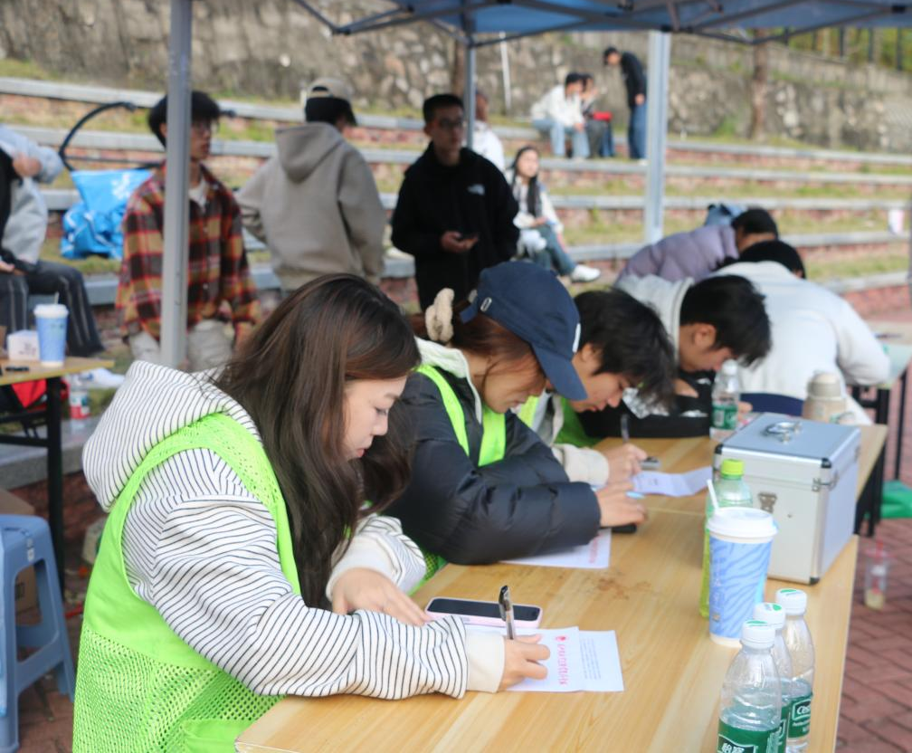 赛事开始前,志愿者们已在学生会工作人员的统筹下,投入到紧张有序的准备工作中。他们分工协作、高效联动,扎实完成了场地布置、物资调配、运动员引导、秩序维护及环境清洁等多项任务,为赛事的顺畅进行提供了有力保障。莹绿色的身影穿梭于赛场各个角落,犹如跃动的音符,共同奏响了运动会的奋进乐章。