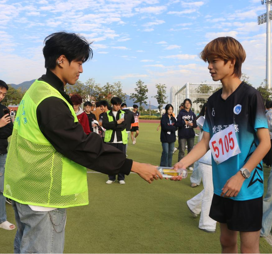 赛场上,运动员们奋力拼搏、逐梦争先;赛场边,志愿者们同样全力以赴,用微笑与呐喊传递温暖和力量。他们在跑道旁为选手加油助威,在终点处及时递上饮水与毛巾,以真诚的关怀缓解运动员的紧张与疲惫。一声声“加油”、一句句“辛苦了”,汇聚成赛场上最动人的暖流,充分展现了我系学子团结友爱、积极向上的精神风貌。