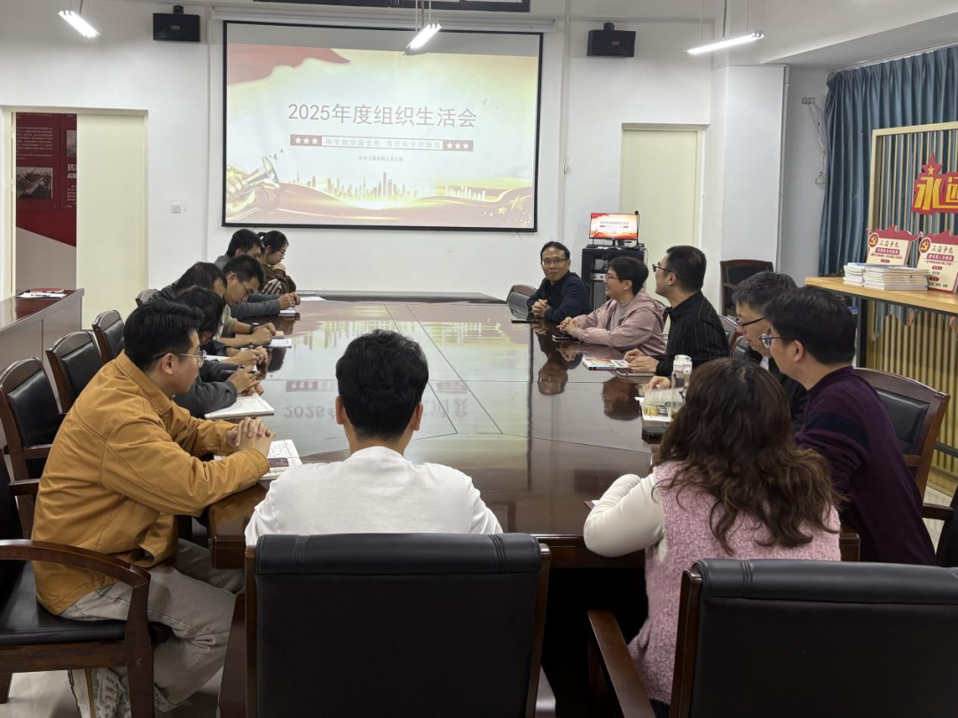 近日,化学工程系教工党支部在化工楼党员活动室召开2025年度组织生活会暨民主评议党员大会。会议由支部书记杨海贤主持,支部全体党员参加,人事处处长陈群霞到会指导。