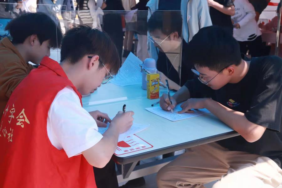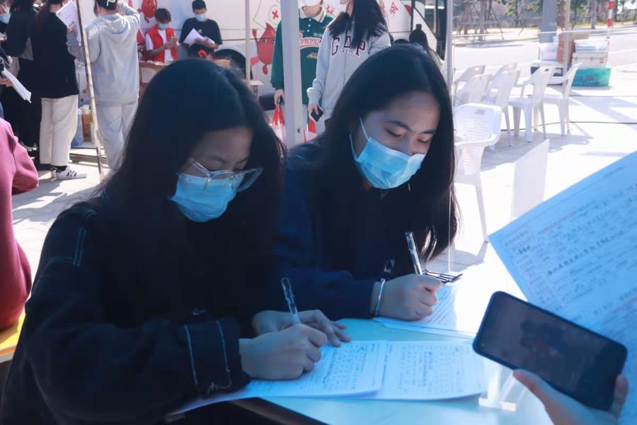 此次参加献血的同学们积极踊跃,他们在现场医务人员的指导下,按照采血流程,认真填表、化验,井然有序地进行抽血,温热的鲜血传递着浓浓的爱心,一袋袋鲜红的血液汇聚成暖暖的爱流。与此同时,医护人员耐心讲解了献血常识,并分发献血证,叮嘱献血人员献血后一些注意事项。随后,献血的同学们可凭借献血证从志愿者那里获取一份小礼品。