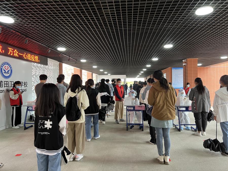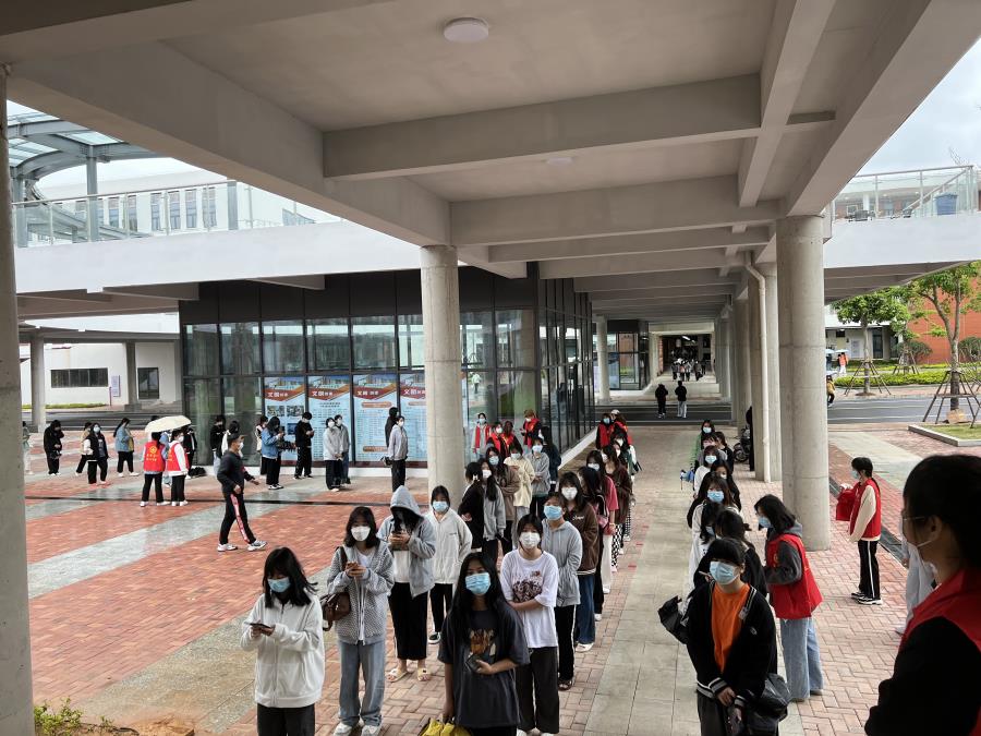 3月22日,我院在这本轮疫情防控下,再一次进行新一轮的全员核酸检测。疫情就是命令,防控就是责任。同学们响应号召,积极参加学校组织的核酸检测,为自己和他人的健康建上一座安全防火墙。我系志愿者们踊跃报名志愿者工作,配合医护人员进行核酸采样工作。