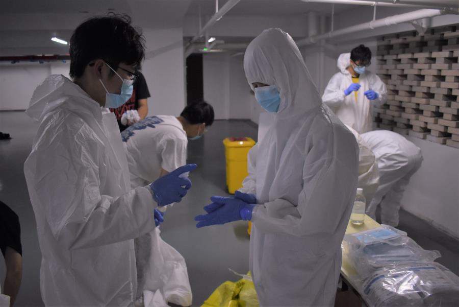 送餐数量多,效率不打折。志愿者负责人会提前一天将各个宿舍的订餐信息分类整理,核定普通餐和清真餐数量,对接食堂负责人下单。第二日接餐、核餐、分餐、装袋、送餐,每一步都按照预定时间有序推进,确保准时送达,让在宿舍隔离的同学们都能在就餐时间准时吃上饭。