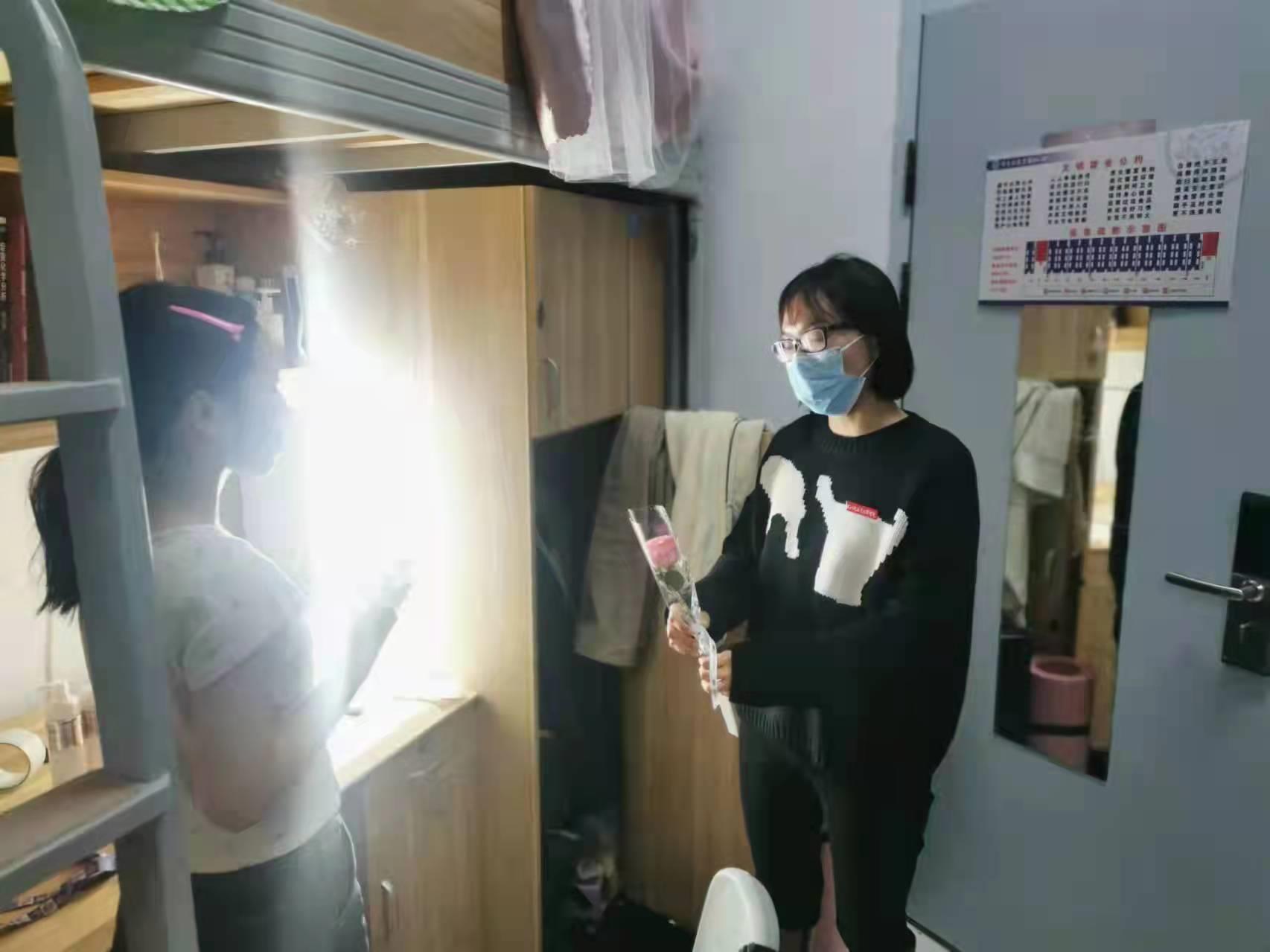近日,我系被隔离学生经历为期14天的隔离后,又重新回到各自宿舍。解除隔离当天,化工系组织学生志愿者帮助隔离同学提行李返回宿舍。我系党总支副书记翁秀琴和辅导员们当天就前去看望已经解除隔离的同学,感谢同学们配合学院的疫情防控工作,完成14天的隔离期隔离。春风料峭,莆田气温近来急速下降,书记叮嘱同学们衣服要穿暖,要多喝白开水,以防感冒。书记还带来了一小袋的花送给每位解除隔离的同学表达系部的心意,欢迎同学们回“家”。被隔离同学看到书记也是非常开心激动,主动说起隔离期间的生活安排和老师上网课情况。