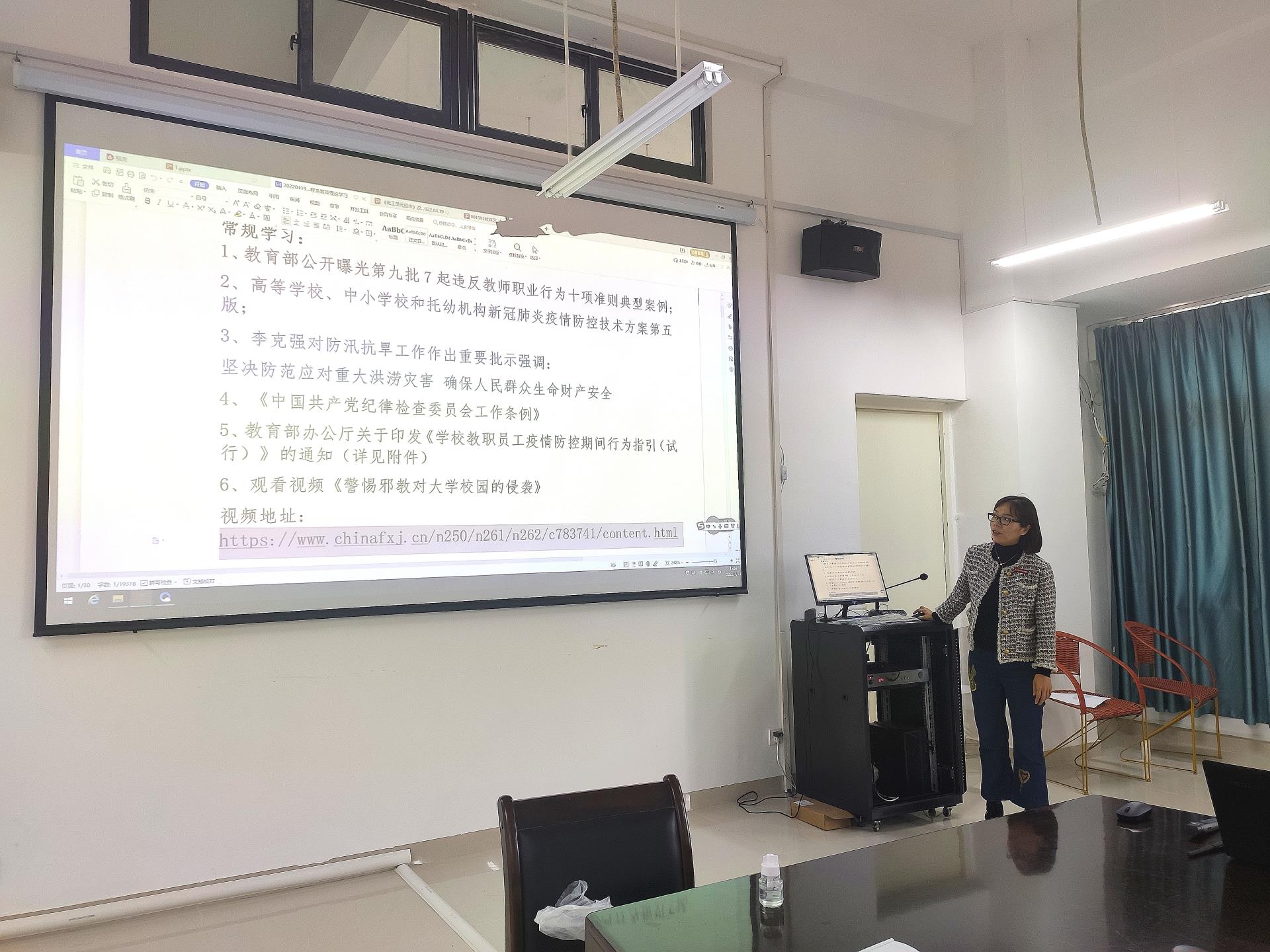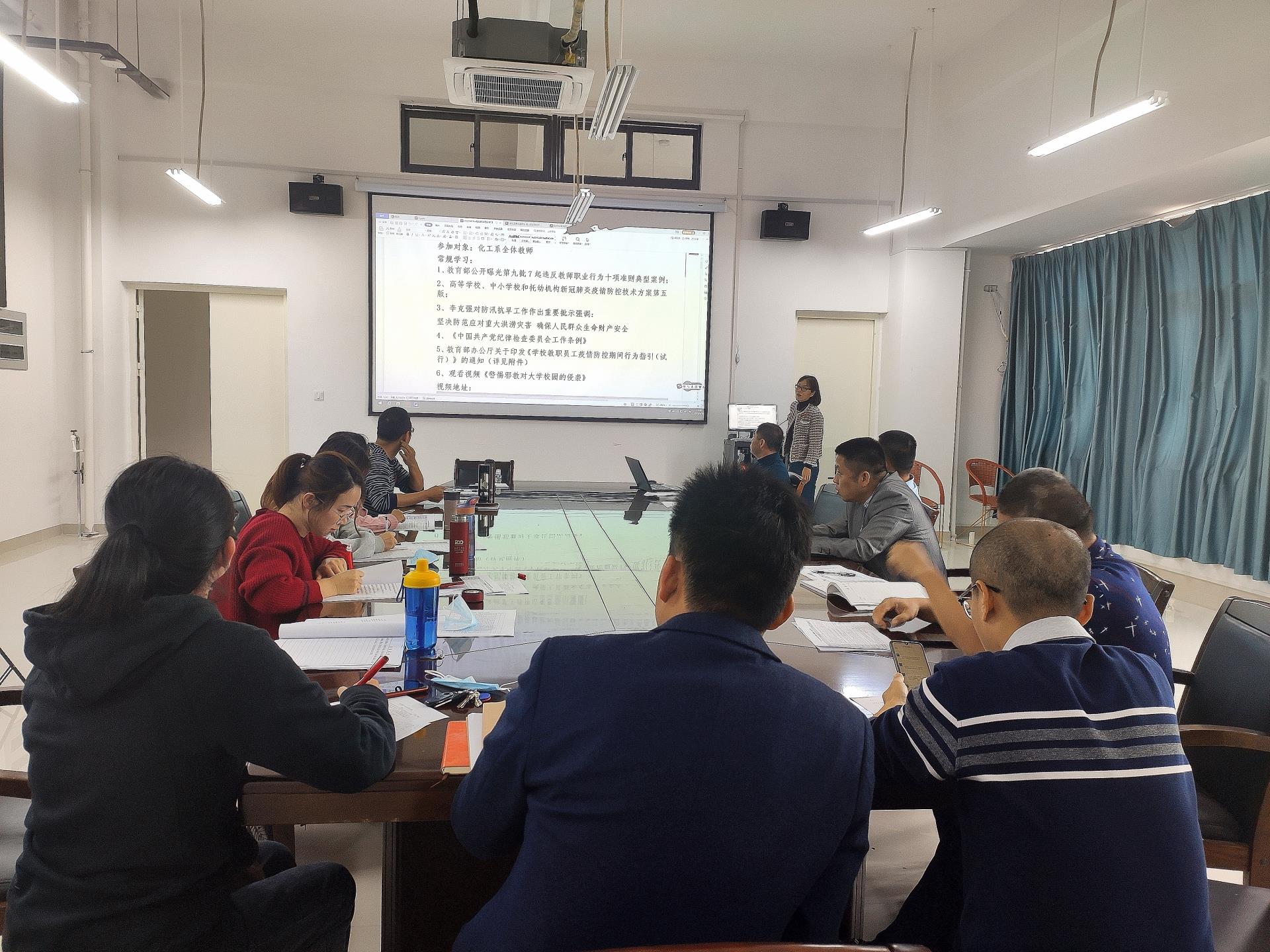 为进一步压实校园防控主体责任,有序落实常态化防控与应急处置措施,根据新型冠状病毒肺炎防控方案和当前疫情形势需要,4月19日下午,化学工程系组织全体教师在化工楼党员活动室共同学习了《高等学校新冠肺炎疫情防控技术方案(第五版)》、《学校教职员工疫情防控期间行为指引(试行)》,会议由党总支副书记翁秀琴主持。