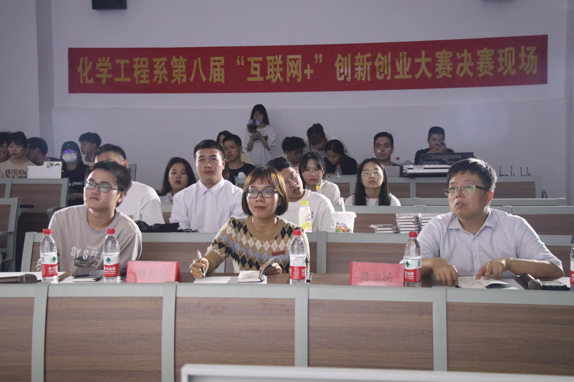 为激发大学生的创造力,培养造就"大众创业、万众创新"的生力军,4月23号晚化学工程系举办第八届“互联网+"大学生创新创业大赛决赛。出席本次决赛的评委有化学工程系党总支副书记翁秀琴、陈金民副教授以及大三创业学生代表胡御泽。