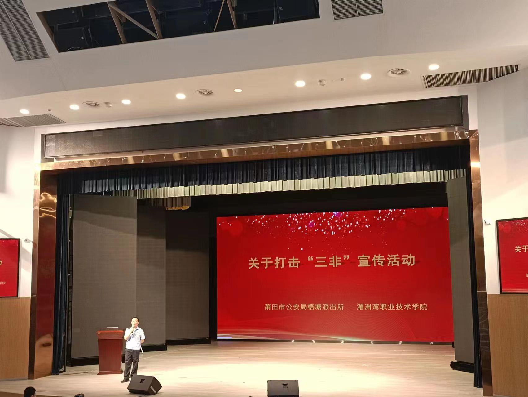 为深入学习贯彻习近平总书记关于禁毒工作的重要指示精神,认真落实国家禁毒委和省委、省政府工作部署与落实习近平总书记关于打击治理电信网络诈骗犯罪工作的重要指示精神,有效防范电信网络诈骗违法犯罪,提升广大师生防范各类电信网络诈骗安全意识和能力,预防和减少校园电信网络诈骗和“套路贷”案件的发生,共建平安校园,6月14日下午,湄洲湾职业技术学院在梧塘新校区立言大礼堂举行了“反诈法制安全禁毒宣传”安全教育日活动,我系学子积极参加。