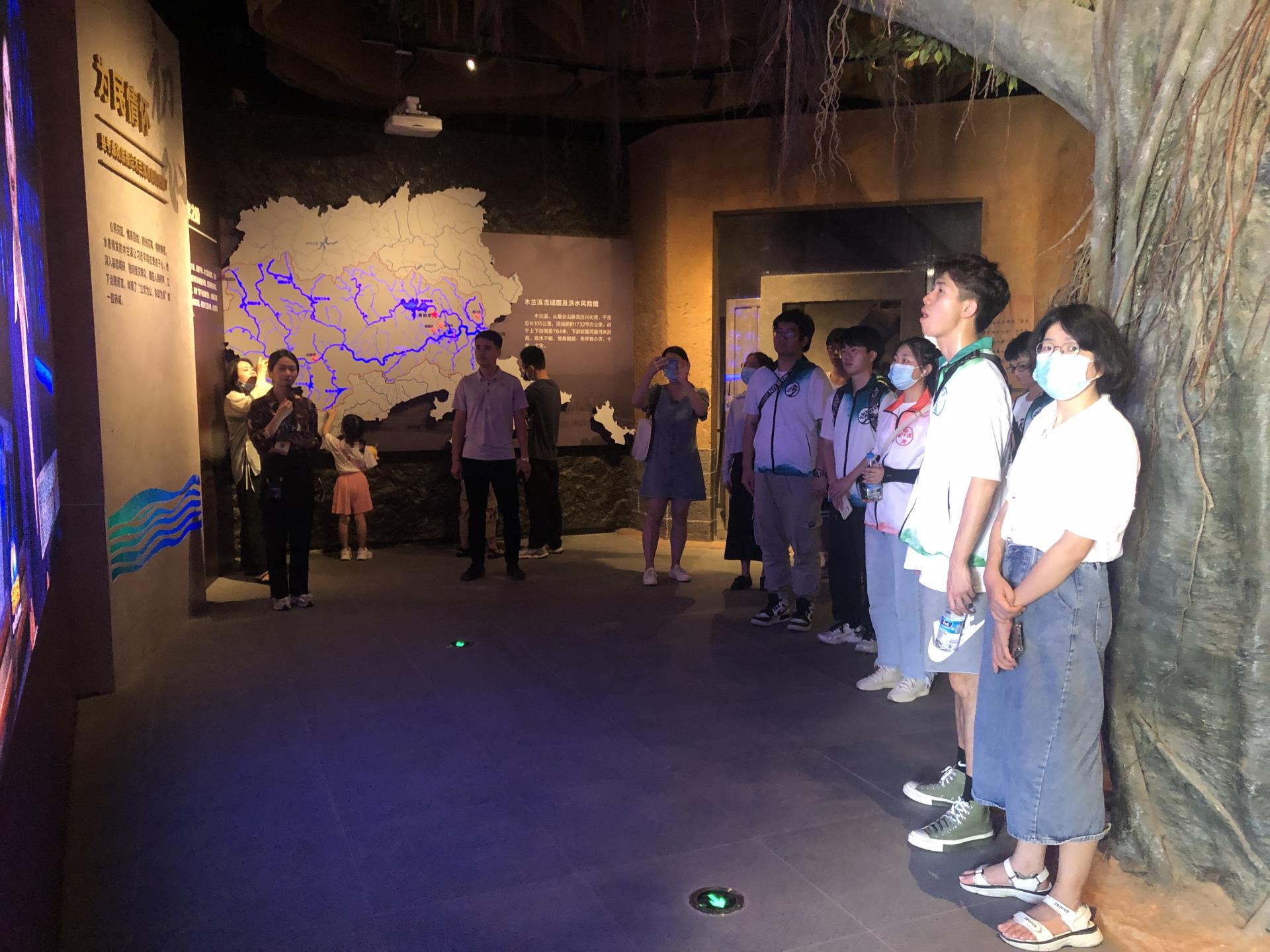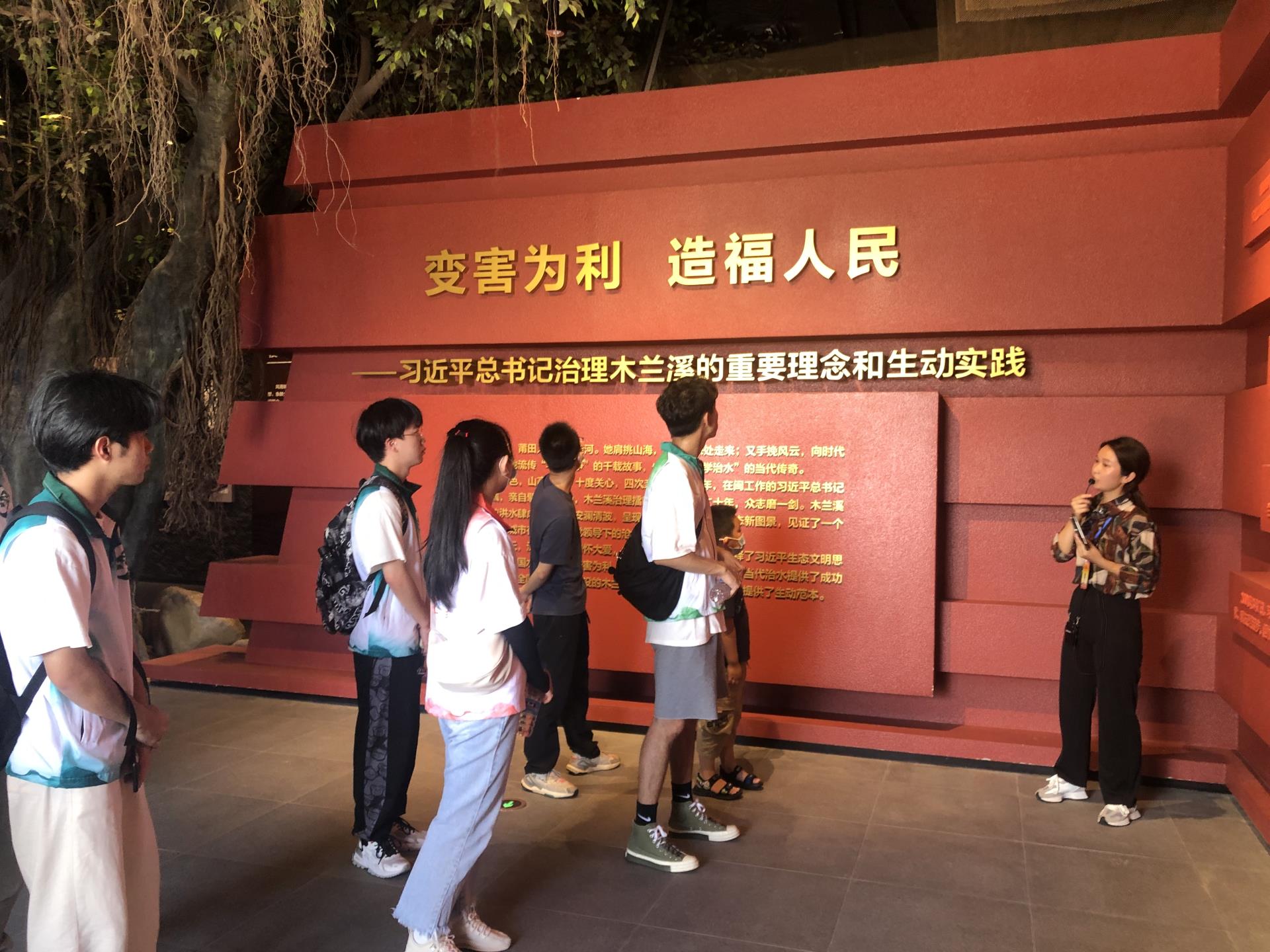 我系辅导员罗茂林先是介绍了馆内木兰溪治理展示馆这20余年间的珍贵历史片段的重要时刻和木兰溪成为新中国水利史上“变害为利、造福人民”的生动实践的全过程,并以蓝绿红三个主色调串起木兰溪治理绿色生态、壮丽蓝图、红色精神等主旨意义。