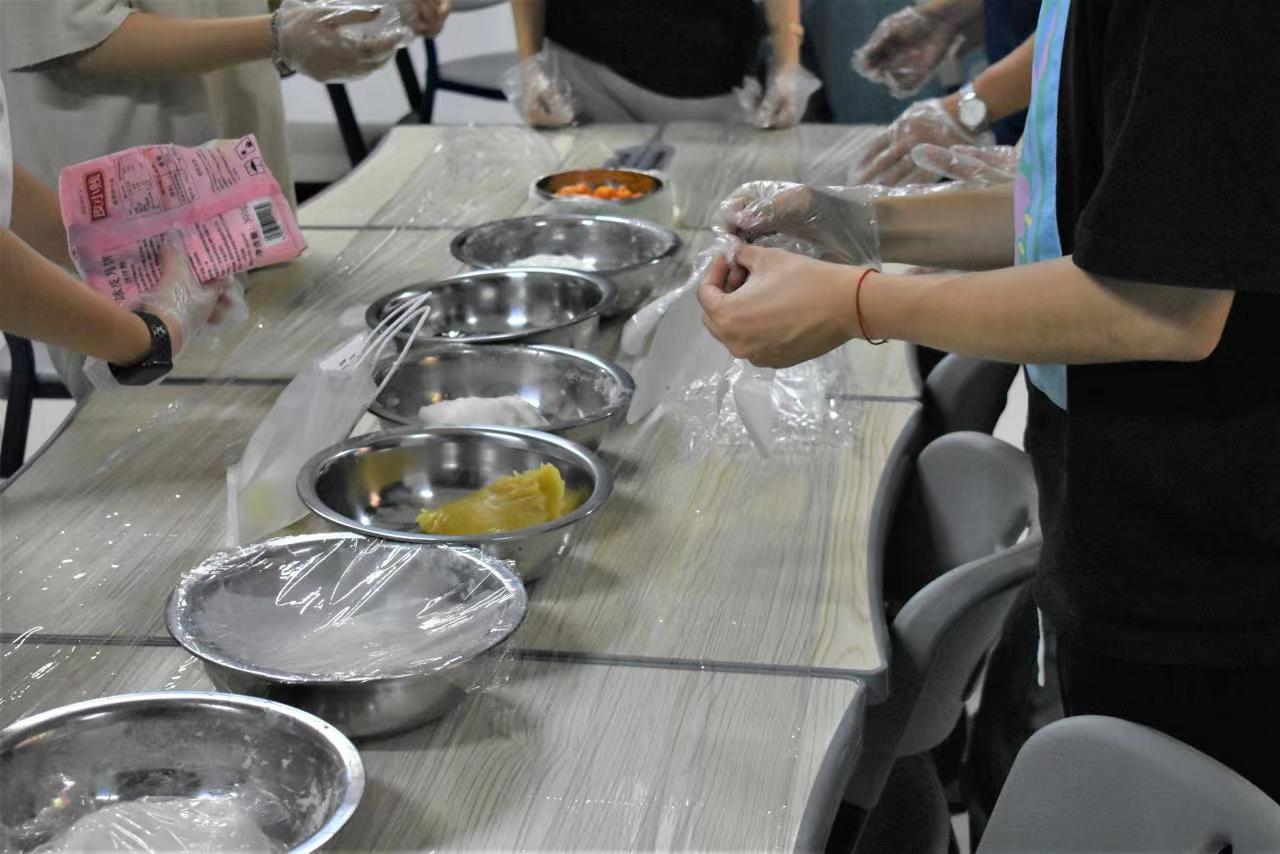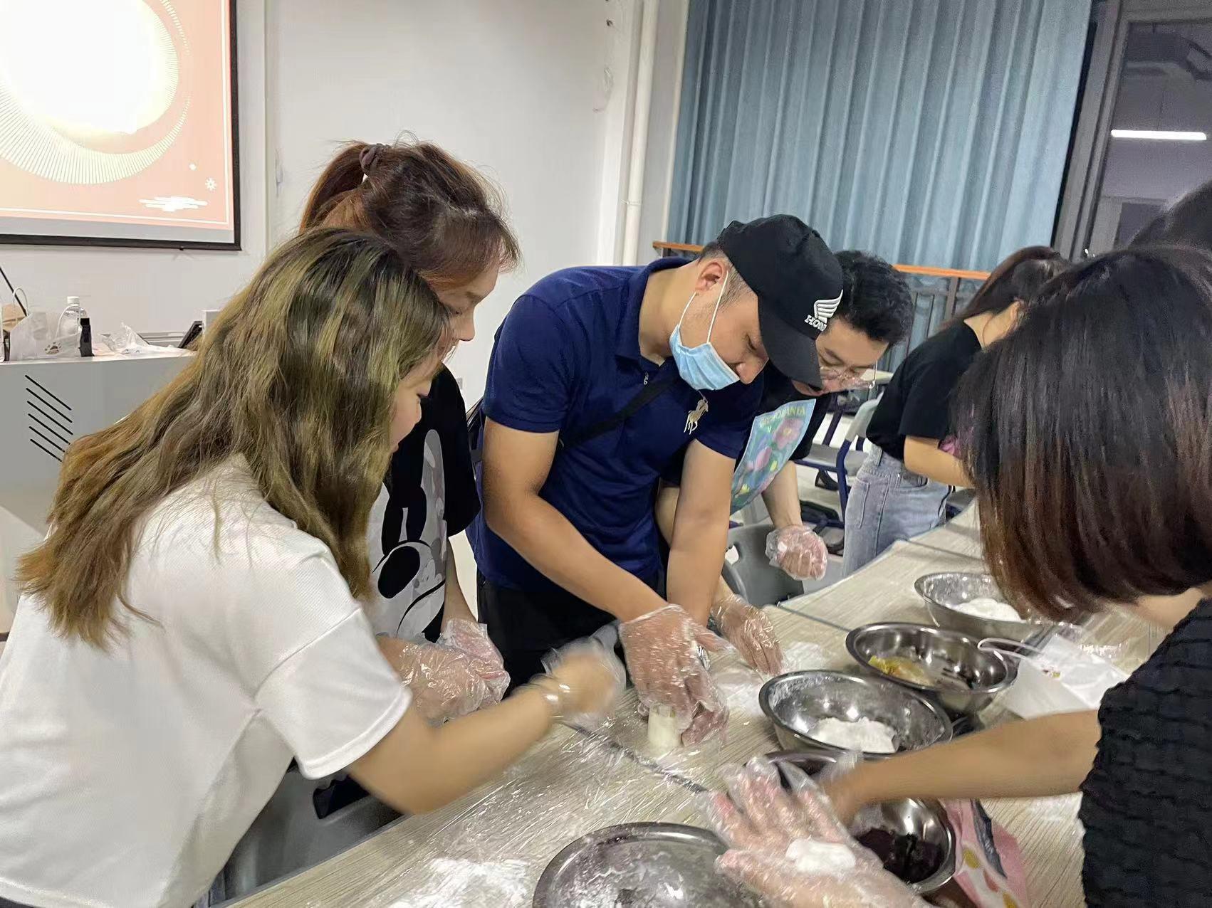 活动伊始,罗茂林辅导员介绍了中秋节的来源及民俗传统文化。同时还精心准备了月饼皮、馅料、磨具等食具。活动中,大家积极性非常高,现学现做,秤面皮、包馅料、按花型,忙得不亦乐乎。大家分工合作,齐心协力,一个个晶莹剔透的月饼迅速“出炉”,一张张灿烂无比的笑脸洋溢着喜悦。