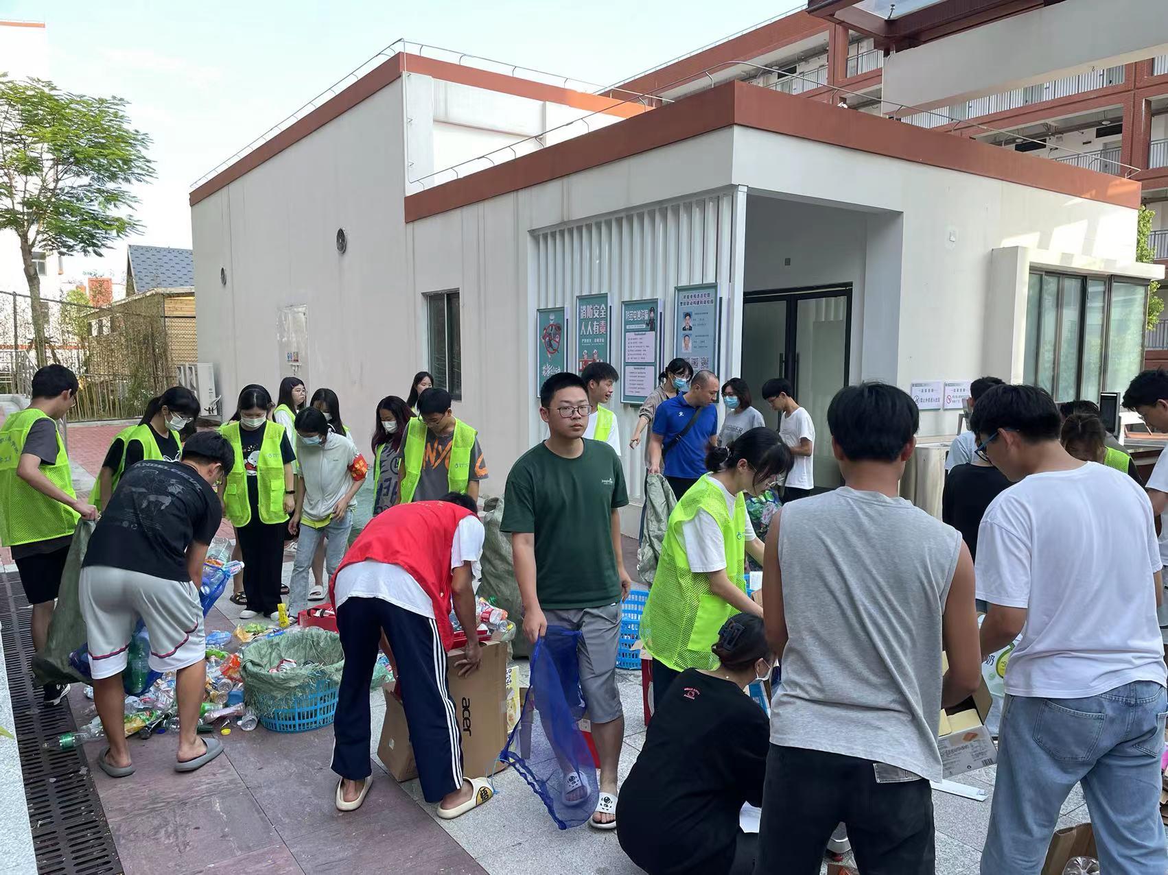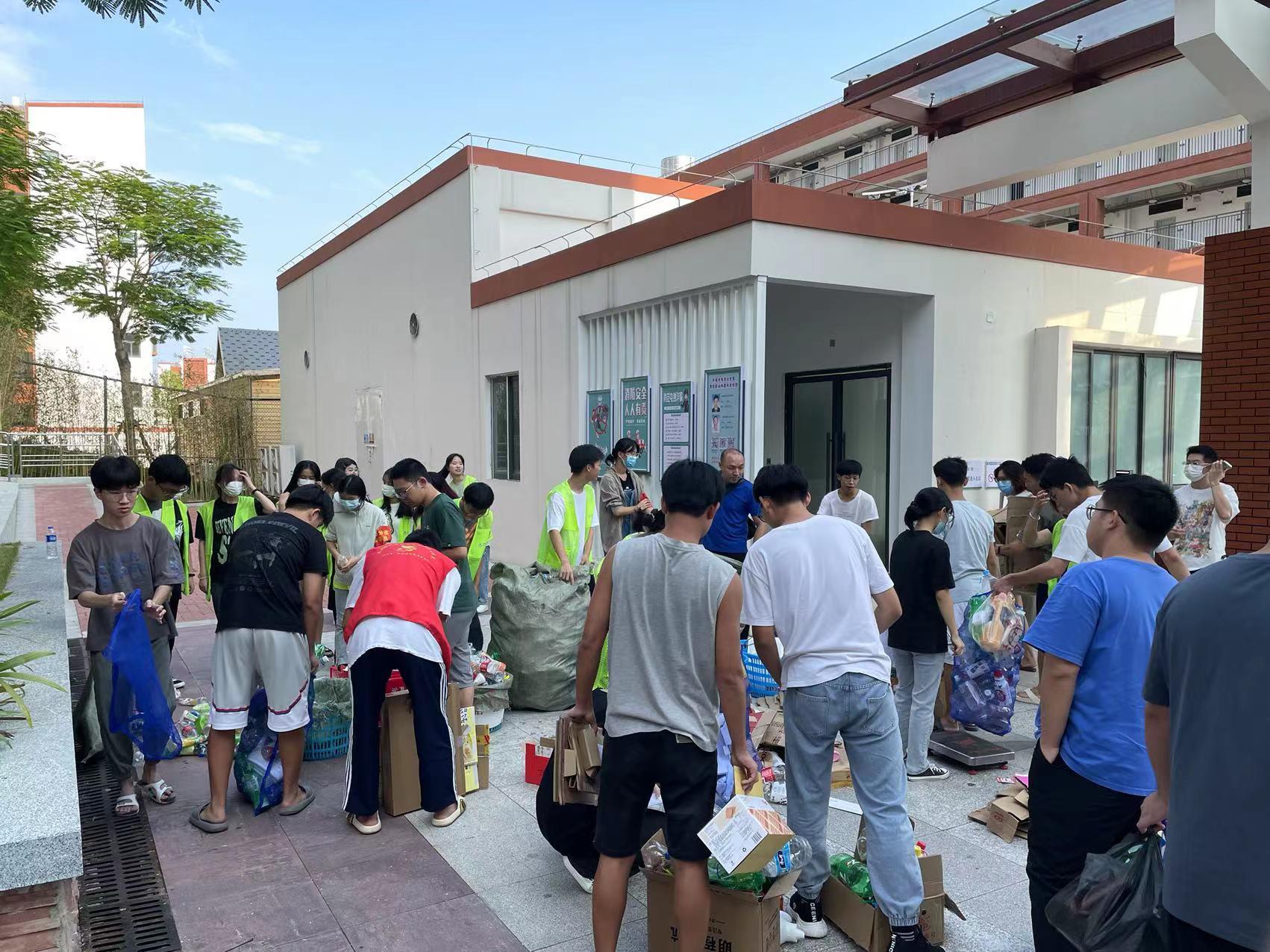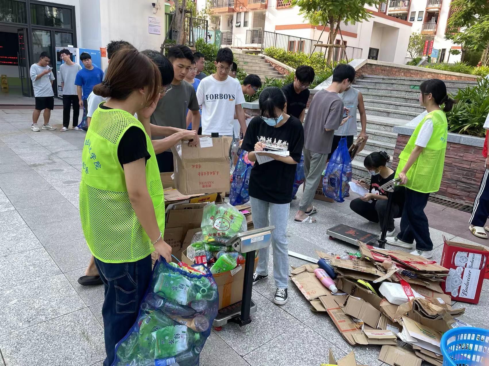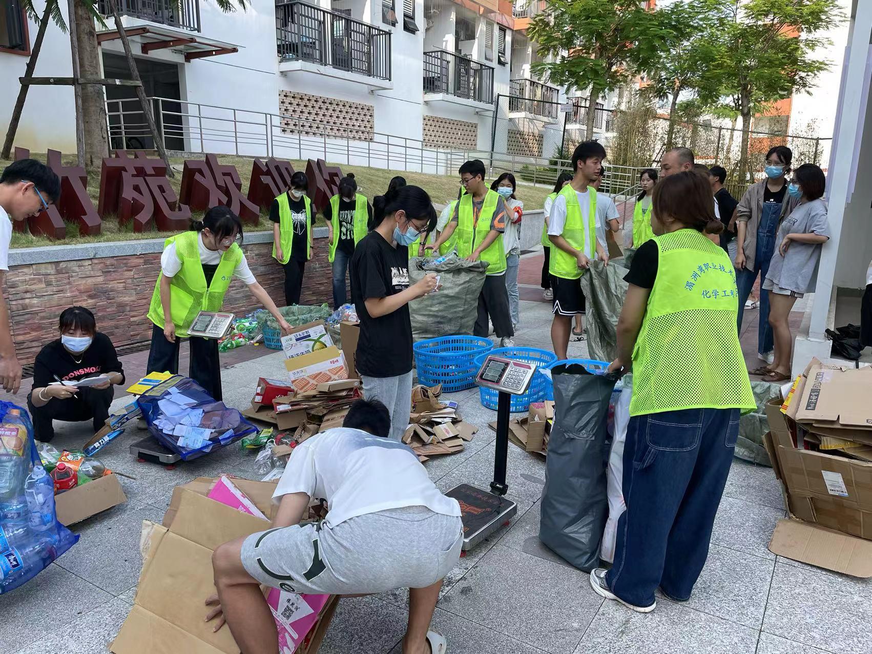 在活动中,罗茂林辅导员和身穿荧光绿志愿者服们将每间宿舍带下来的塑料瓶与纸箱分门别类,并将所有纸箱和塑料瓶称重记录并且整理放置好,志愿者们用自己的行动来提高全校师生的生活垃圾分类和资源环境意识,倡导简约适度、绿色低碳的生活方式。