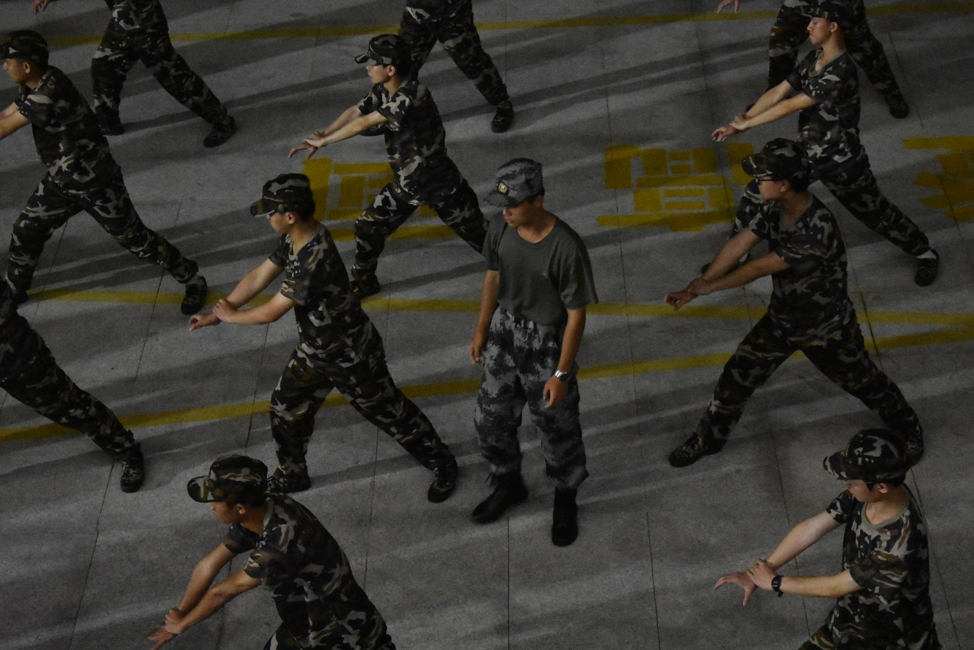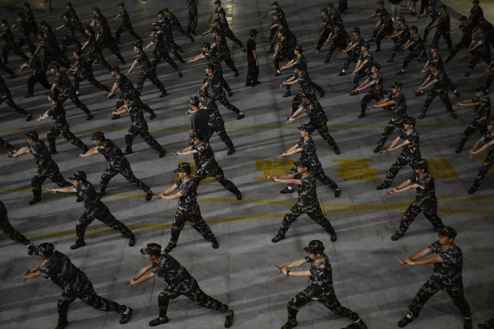 在教官铿锵有力的指挥口令下